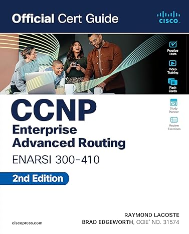 Trust the best-selling Official Cert Guide series from Cisco Press to help you learn, prepare, and practice for the 300-410 ENARSI exam. Well regarded for its level of detail, study plans, assessment features, and challenging review questions and exercises, this official study guide helps you master the concepts and techniques that ensure your exam success. Expert authors Raymond Lacoste and Brad Edgeworth share preparation hints and test-taking tips, helping you identify areas of weakness, and improve both your conceptual knowledge and hands-on skills.This complete study package includes:A test-preparation routine proven to help you pass the examDo I Know This Already? quizzes, which allow you to decide how much time you need to spend on each sectionExam Topic lists that make referencing easyChapter-ending exercises, which help you drill on key concepts you must know thoroughlyThe powerful Pearson Test Prep Practice Test software, complete with hundreds of well-reviewed, exam-realistic questions, customization options, and detailed performance reportsMore than 70 minutes of video mentoring from the authorA final preparation chapter, which guides you through tools and resources to help you craft your review and test-taking strategiesStudy plan suggestions and templates to help you organize and optimize your study timeContent Update Program:This fully updated second edition includes the latest topics and additional information covering changes to the latest ENARSI 300-410 exam. Visit ciscopress.com/newcerts for information on annual digital updates for this book that align to Cisco exam blueprint version changes.This official study guide helps you master all the topics on the CCNP Enterprise Advanced Routing ENARSI exam, includingLayer 3 technologies, including IPv4/IPv6 routing, EIGRP, OSPF, and BGPVPN services, including MPLS Layer 3 VPNs and DMVPNInfrastructure and on-device security, including ACLs, AAA, uRPF, CoPP, and IPv6 first hop security featuresInfrastructure services, including DHCP, syslog, SNMP, IP SLA, Object Tracking, NetFlow, Flexible NetFlow, and moreCompanion Website:The companion website contains more than 200 unique practice exam questions, practice exercises, a study planner, and 90 minutes of video training.Includes Exclusive Offers for Up to 80% Off Practice Tests and Video TrainingPearson Test Prep online system requirements:Browsers: Chrome version 73 and above, Safari version 12 and above, Microsoft Edge 44 and above.Devices: Desktop and laptop computers, tablets running Android v8.0 and above or iPadOS v13 and above, smartphones running Android v8.0 and above or iOS v13 and above with a minimum screen size of 4.7”.Internet access required.Pearson Test Prep offline system requirements:Windows 10, Windows 8.1; Microsoft .NET Framework 4.5 Client; Pentium-class 1 GHz processor (or equivalent); 512 MB RAM; 650 MB disk space plus 50 MB for each downloaded practice exam; access to the Internet to register and download exam databases